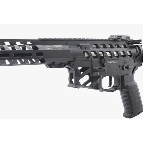The Arcturus X C.A.T. AR-15 Explorer 10" AR AEG features a full aluminum receiver construction that offers a realistic look and feel, as well as a C.A.T. modular tactical stock that allows for more comfort options. The skeletonized receiver design helps to cut down on weight for this rifle, and the free float M-LOK handguard provides plenty of rail space for M-LOK compatible accessories.