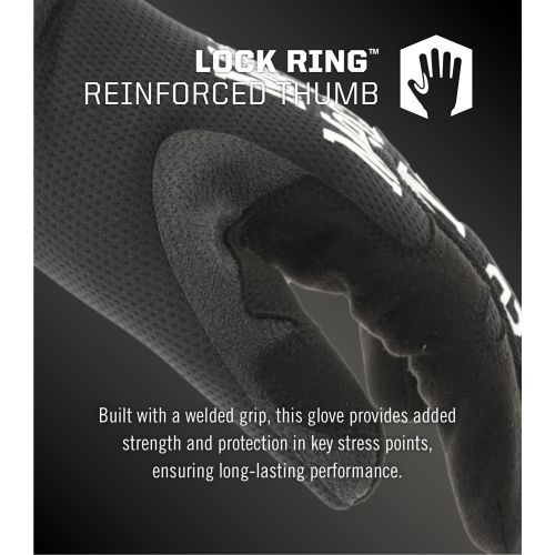 - Welded Lock Ring™ grip thumb panel wraps the high-wear thumb saddle, reducing vulnerable stitching