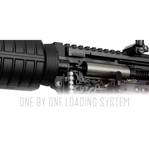 - Enhanced Feeding Mechanisms: A stabiliser nozzle maintains consistent positioning for superior accuracy, complemented by an inner elevation system that applies upward tension to the magazine, eliminating feed issues. The innovative one-by-one loading ensures the shutter closes after each BB feeds into the chamber, preventing double-feeds.