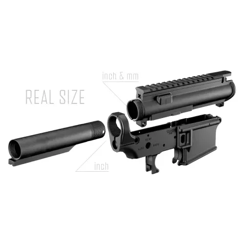 - Authentic Exterior Detailing: Precisely measured from a genuine firearm, every component—from receivers and handguard to grip and buffer tube—mirrors real-world proportions. Receivers feature Cerakote for exceptional abrasion resistance, while the grip employs reinforced resin for a slim, durable profile with an unpainted finish to capture the raw texture.