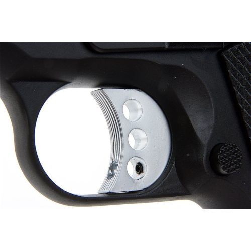 This gun, similar to the VFC 1911 Tactical Custom and many other newer VFC pistols has VFC's guide-hop system, meaning you can adjust the hop from the guide rod, without removing your slide. The slide is much shorter, allowing for much more comfortable carrying, but the grip is only a bit shorter, meaning you can still get a full grip but you will have 2 rounds less compared to the full-size VFC 1911 as the Ultra Carry carries 18 rounds while the Tactical Custom will carry 20 rounds.